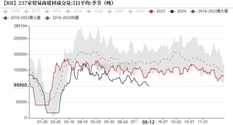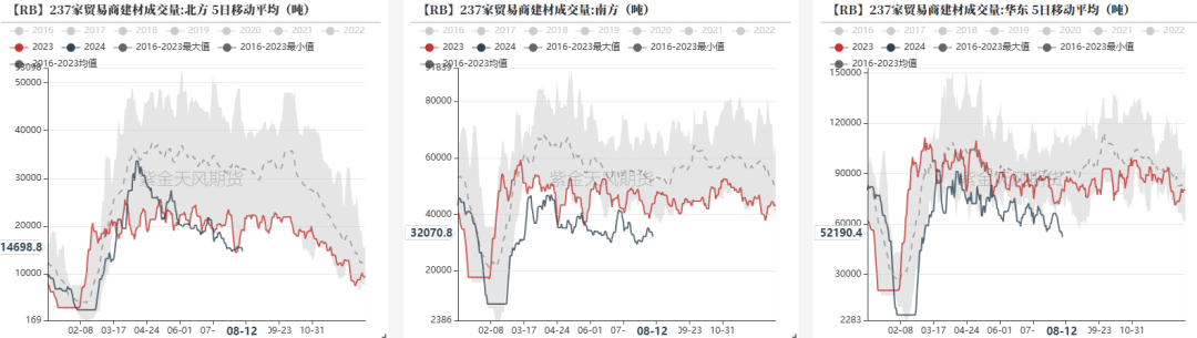 分地区来看,截至8月12日,华东地区建材成交量为5.22万吨;华北地区为1.47万吨;华南地区为3.21万吨。