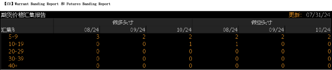 LME的Futures Banding Report显示铜价远期多头轻仓有所增加,中期空头有所减少,市场分歧度略有下降。