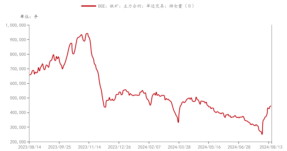 截至8月12日,铁矿2501合约持仓441525手,较上一周增20.1%。