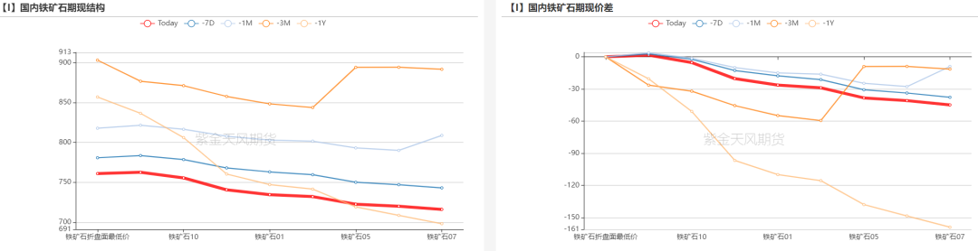 现货 铁矿现货成交量下行,远期货成交量下行,01合约基差率3.8%左右,基差暂稳,基差率下行。
