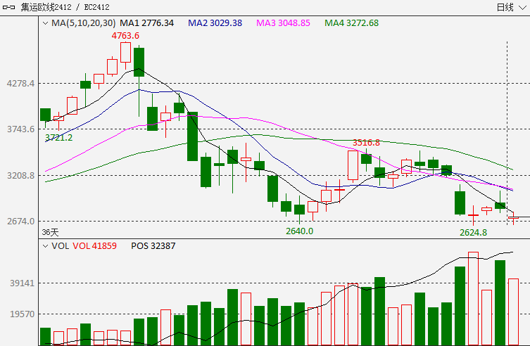 吴勇表示,由于市场货量未能保持积极状态,加上8月集运旺季临近结束,欧洲航线运价基本见顶,开始向下缓慢回落。需要注意的是,班轮公司将会根据后续货量增减情况进行运价调整。他预计,EC2410合约中短期在3000~3800点区间震荡,关注EC2412合约在2700点附近支撑位和3300点附近压力位的表现。