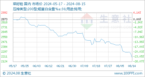 8月15日生意社菜籽粕基准价为2196.67元/吨