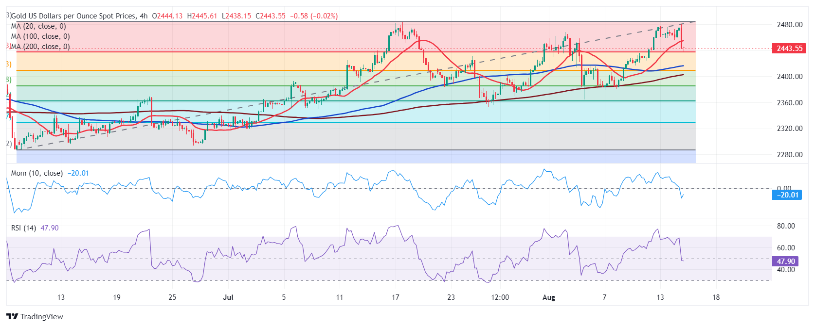 Bednarik表示,从技术面来看,黄金日线图显示,看跌潜力仍然有限。金价在6月/7月反弹走势的23.6%斐波那契回撤位2438.80美元/盎司附近发现盘中底部,目前守在该水平上方。与此同时,技术指标已经失去向上的力量,但仍在正面水平内。相对强弱指数(RSI)转向下行,但远未证实又一波下行。最后,金价继续在其所有移动平均线上方发展,20日简单移动平均线(SMA)目前持平于2417.50美元/盎司附近。