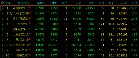 期货午评:鸡蛋涨超2%,烧碱焦煤涨超1%,碳酸锂、PX跌超3%,铁矿石跌近3%,燃料油、热卷、工业硅跌超2%