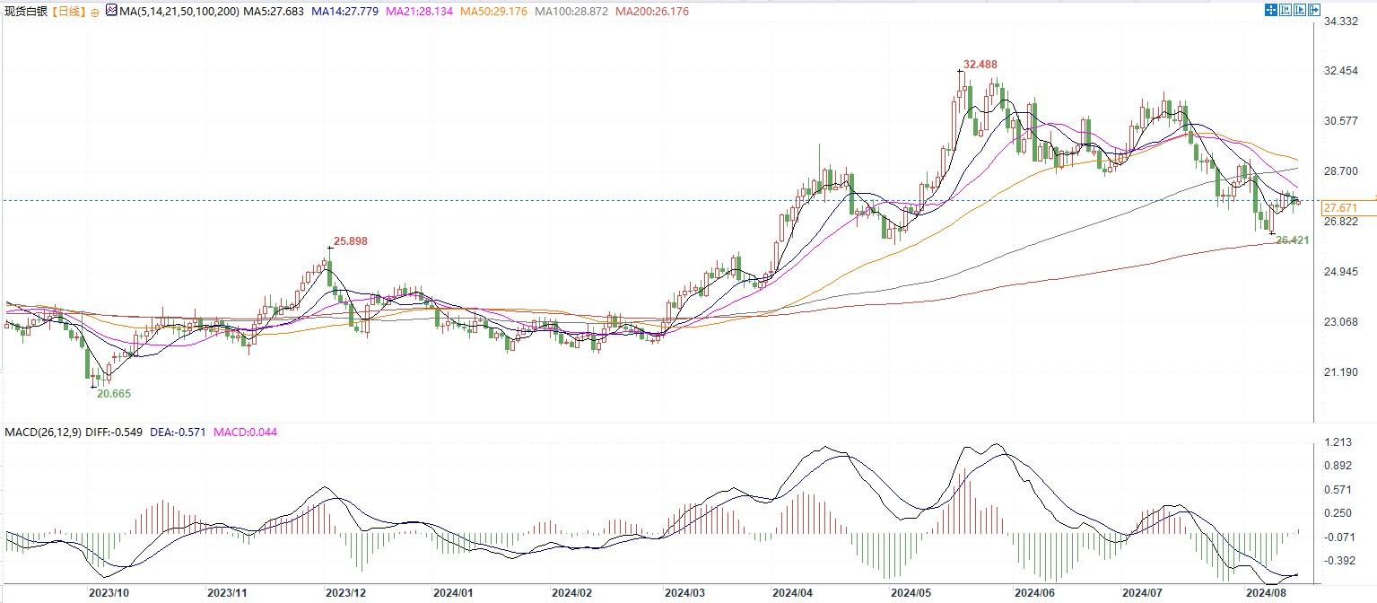 北京时间8月15日11:10,现货白银报27.67美元/盎司