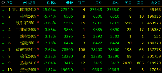 期货收评:燃料油涨超2%,玉米、SC原油、生猪涨超1%,集运指数跌超15%,硅铁跌超5%,铁矿石工业硅跌超3%