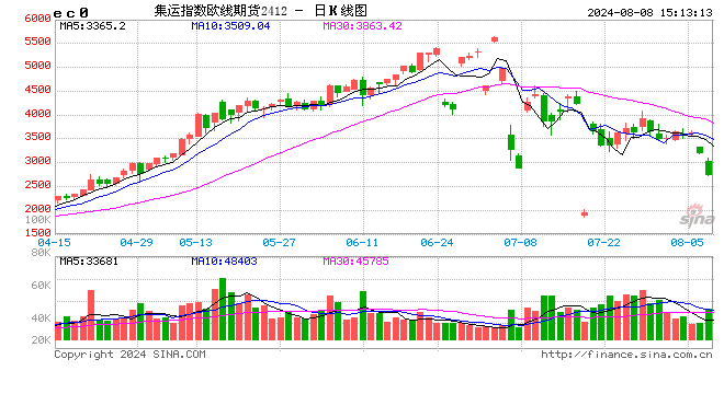 集运指数(欧线)主力合约日内领跌期市。现货市场方面,马士基二次调降wk34欧基港运费:周二开放wk34欧基港舱位,参考上海至鹿特丹大柜7300美金,低于上周wk33二次调降后的大柜7400美金,二度调降再度给到共舱的MSC较大的压力。中辉期货分析师吴明近认为,综合来看,整体市场情绪偏弱,现货持续回落,宏观衰退交易预期放大,叠加马士基近期不断下调运价,中东地缘因素“引而不发”也导致复航预期摇摆,预计盘面将以震荡偏弱表现为主。技术面,远月合约仍以逢高沽空为主思路为主。短期2412合约关注周线图20日线支撑作用,一旦跌破大概率进一步打开向下回调空间。(中辉期货)