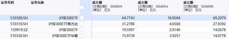 8月15日,A股三大指数全线收涨,其中沪深300ETF时隔一周多再次放量。