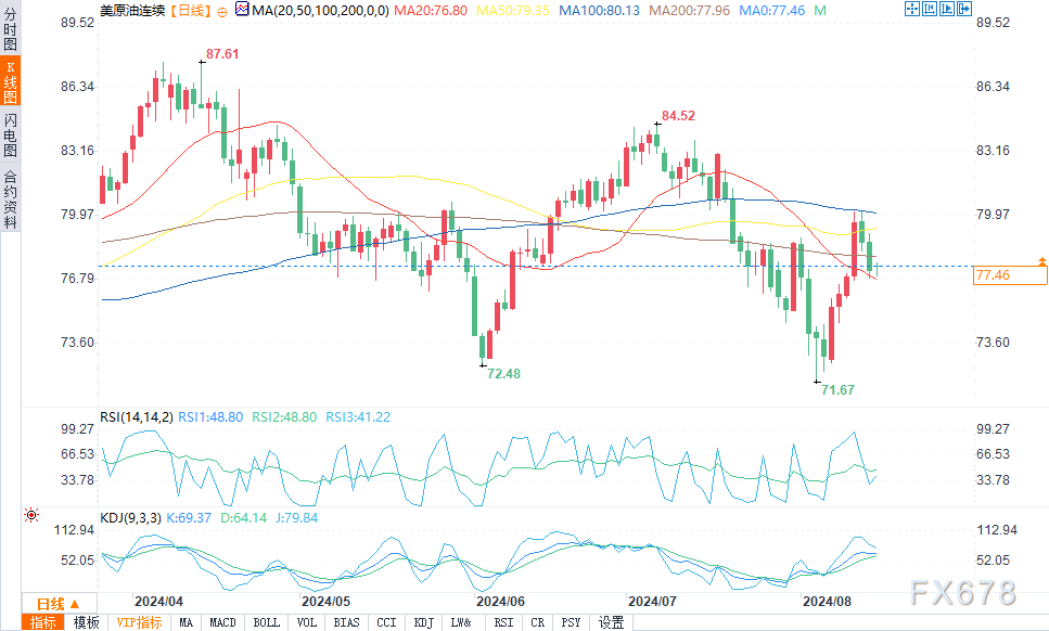 美国能源情报署(EIA)公布原油库存意外增加,这也令油价承压。截至8月9日当周,美国原油库存增加140万桶,与预期减少220万桶形成鲜明对比。这是自6月底以来的首次增长,表明美国需求可能不像预期的那么强劲,加剧了市场的看跌情绪。