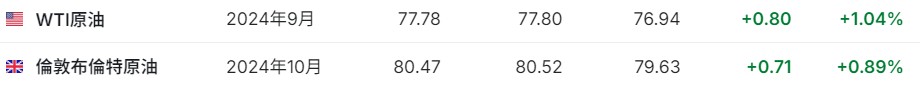 3. 截至发稿,WTI原油涨1.04%,报77.78美元/桶。布伦特原油涨0.89%,报80.47美元/桶。
