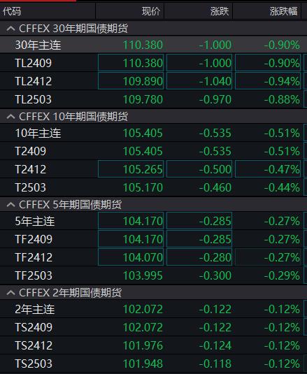 今日,国债期货全线下跌,截至发稿,30年期国债期货主力合约跌近1%,10年期国债期货主力合约跌0.51%。