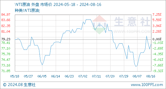 8月16日生意社WTI原油基准价为76.98美元/桶