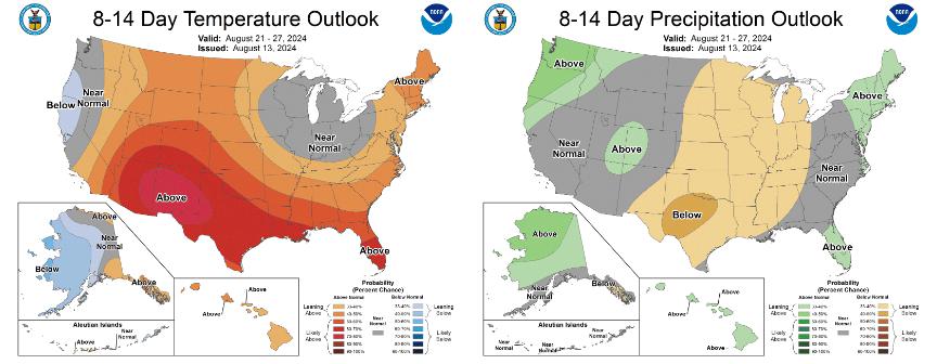 进口方面,我国主要的玉米进口国家已经进入主要出口窗口期,以巴西为例,下半年为巴西二茬玉米收获和出口的主要时期。截止8月14日,下半年我国配额内进口巴西玉米8月船期到港成本在1948元/吨左右,美湾玉米8月船期到港成本1936元/吨左右;美西玉米8月船期到港成本1923元/吨左右;蛇口港散粮成交价为2420元/吨,美西玉米进口略有优势。另外,乌克兰农业部称,截至8月7日,2024/25年度乌克兰谷物出口量为435.6万吨,大幅高于去年同期的235.5万吨。其中玉米出口量174万吨。