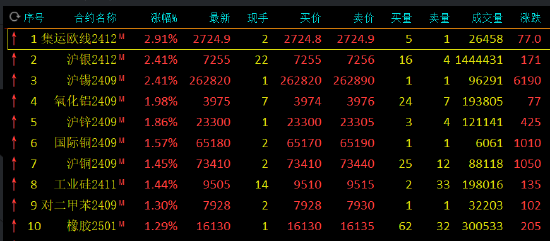 期货午评:集运欧线、沪银、沪锡涨超2%,氧化铝、沪锌涨近2%,锰硅、尿素、生猪、焦炭跌超1%