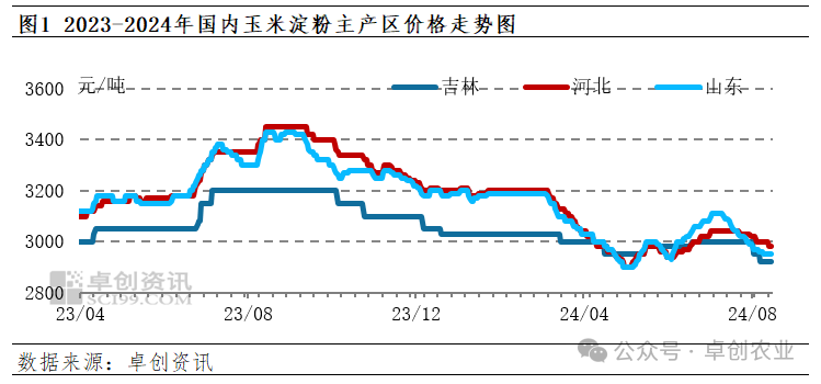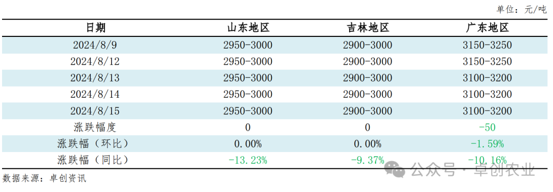 1、本周(20240809-0815)市场回顾:玉米淀粉现货市场价格跌幅放缓。