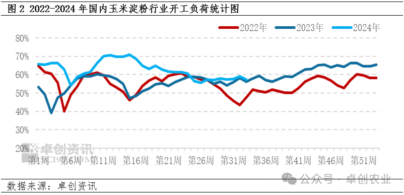 本周玉米淀粉行业开工负荷为57.38%,环比上周下降1.68个百分点。本周玉米淀粉行业开工负荷出现下滑,各地区之间出现差异。其中山东地区个别企业因电厂故障,生产线停产检修,导致行业开工负荷出现下滑。河北地区个别企业因电厂季节性检修,生产线停产,导致行业开工负荷出现下滑。黑龙江与吉林地区,因前期停产与减产企业全线恢复正常开工,导致行业开工负荷出现回升。国内其他地区行业开工负荷暂时保持稳定,暂未出现明显变化。整体来看,本周行业开工负荷降幅明显高于增幅。(备注:益海嘉里(周口)生物科技有限公司本周已开工生产,但因生产不稳定,暂未纳入样本监测)