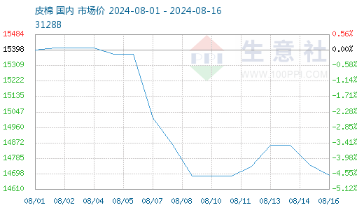周初棉价在外棉刺激下,小幅上涨,但由于后续驱动不足,需求端无利好叠加新年度丰产预测,棉价随后再次下行。据生意社商品行情分析系统,8月16日3128B级皮棉现货价格在14689元/吨,周环比上涨0.04%。