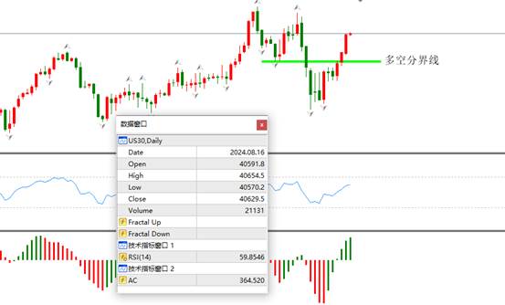 走势结构角度看, 道琼斯指数已经在本周的快速反弹过程中突破了多空分界线,7月下旬至8月初的下跌走势基本宣告结束。短期阻力位在前一分形点4123.68,如果该点位被有效突破,则行情的下一步发展极有可能是刷新历史最高纪录。