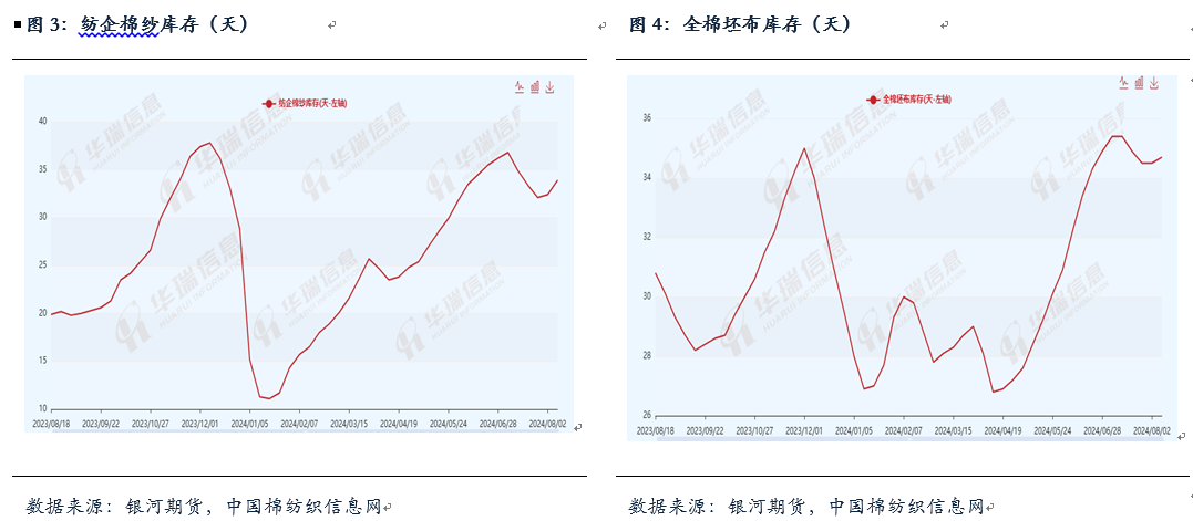 今年7月中旬以来,新疆各地持续高温,许多棉区积温较往年明显偏高,因此预计全疆机采棉较2023/24年度提前7-10天收获。据悉,昌吉、石河子、奎屯及阿克苏、喀什等地部分棉花加工企业在进入8月上旬大部分轧花厂机器检修、设备更新,厂区和厂房、安全和消防维护等等工作都已展开。所以即使包厂意愿有所回升,但是现在基本上包厂处于末期,整体来看今年轧花厂抢收预期比较低。此外随着最近郑棉价格走低,轧花厂对于新年度棉花收购价格预期也是逐步下降。