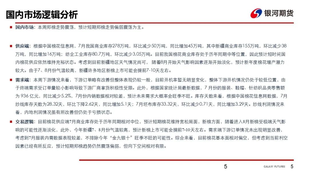 【棉系周报】下游变化不明显郑棉走势震荡偏弱