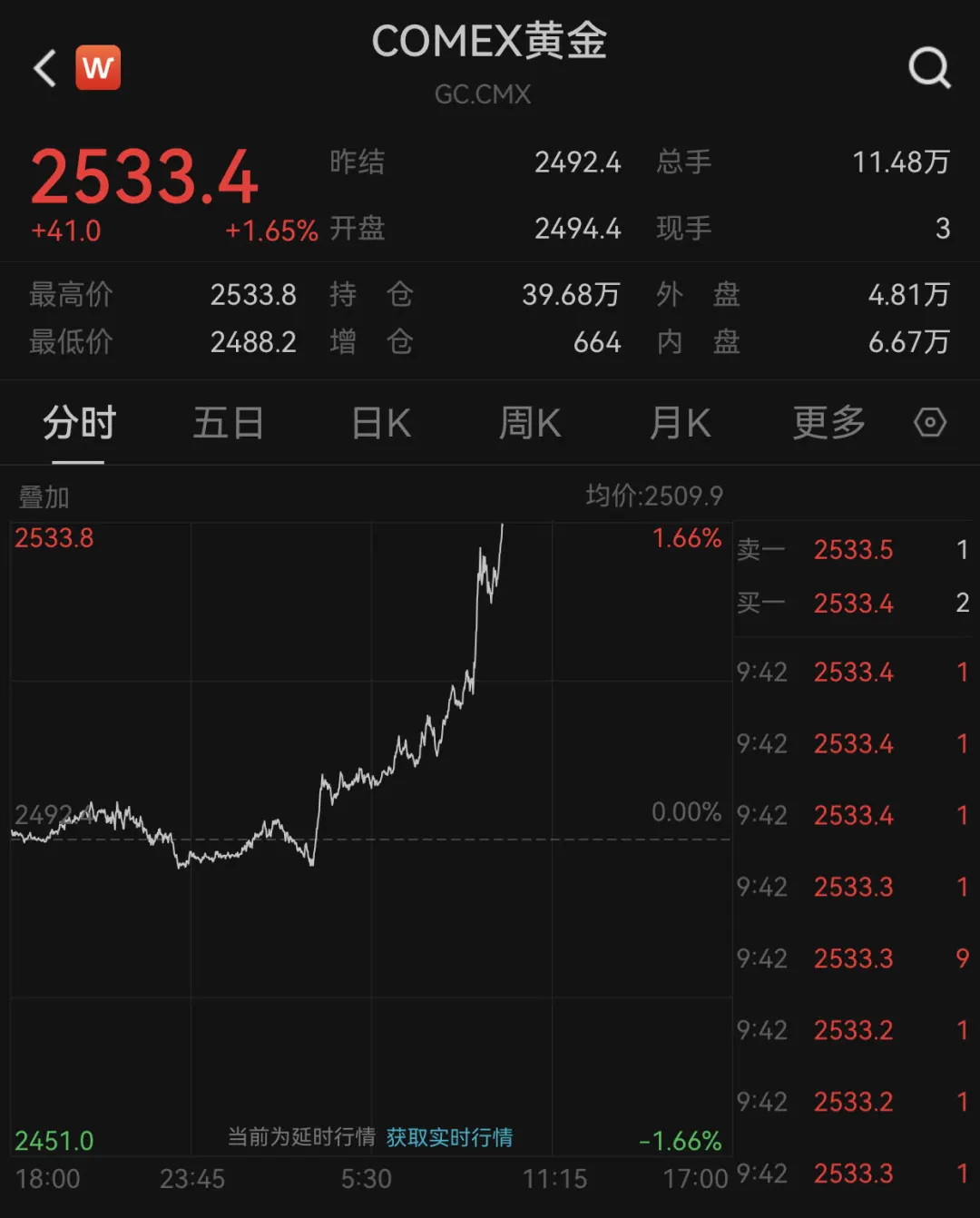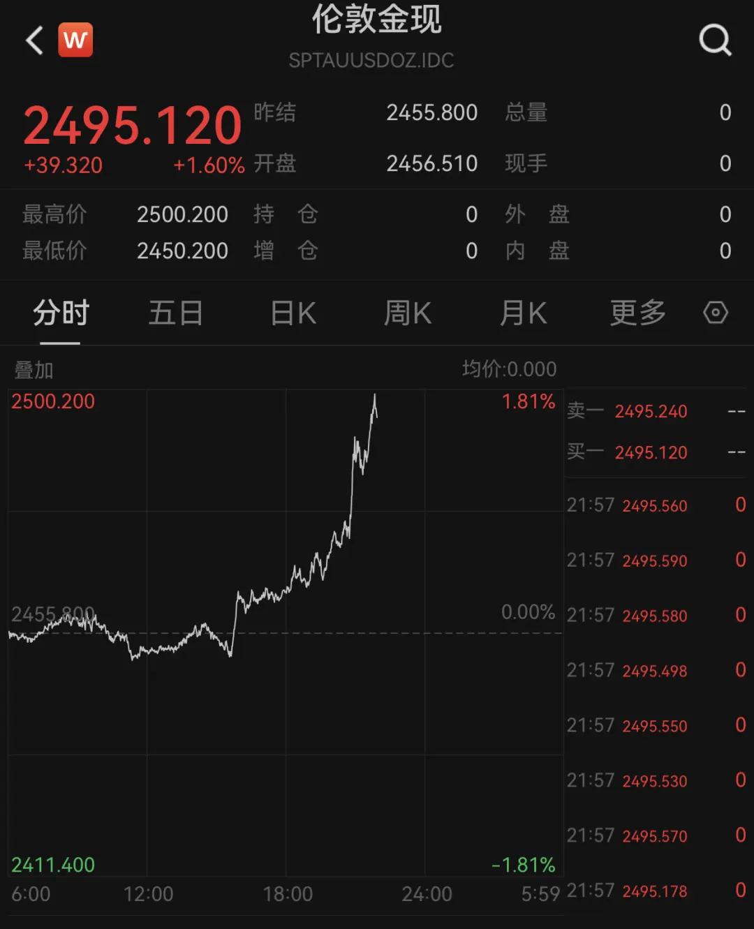 黄金盘中再创历史新高!