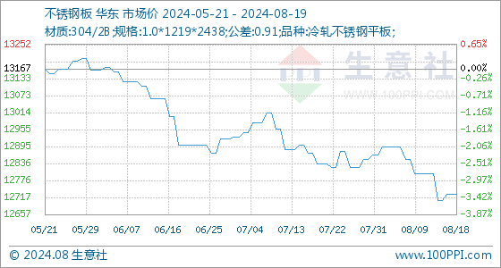 8月19日生意社不锈钢板基准价为12728.57元/吨
