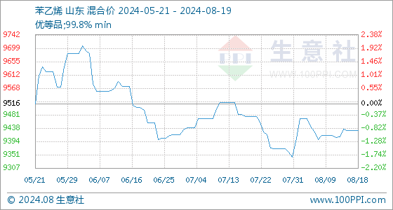 8月19日生意社苯乙烯基准价为9430.00元/吨