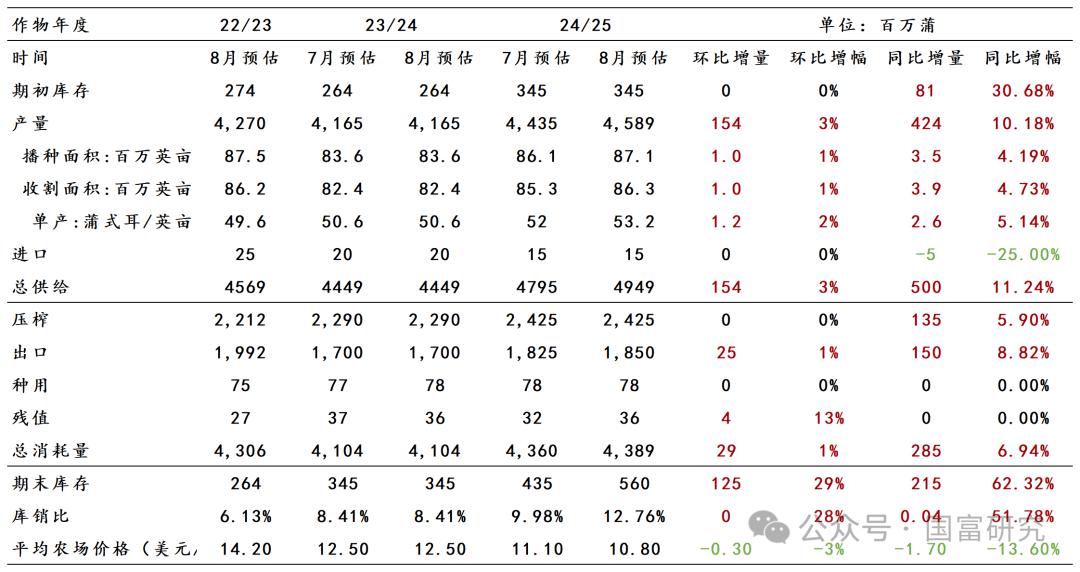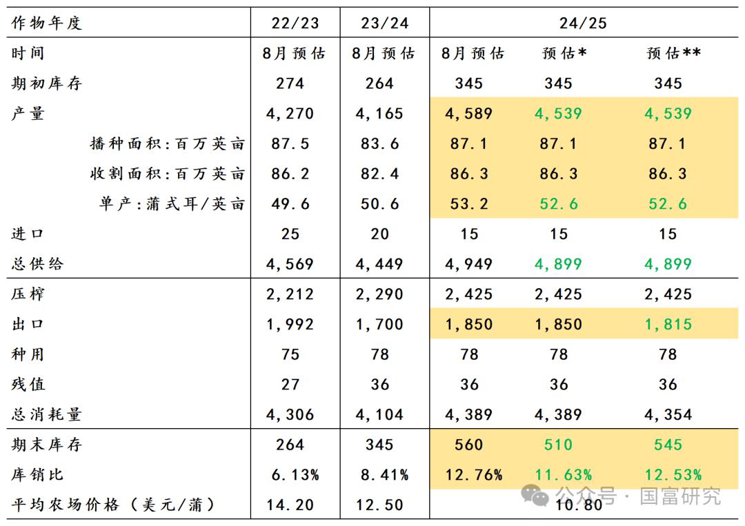 【USDA】8月报告:新作产量超预期,美豆维持偏弱走势
