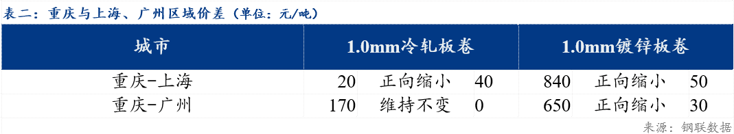 具体来看,冷轧方面:今日期货热卷价格止跌反弹,西南市场冷轧板卷价格跟涨动力不足,甚至午后议价空间增大,但期货走好一定程度上增强了市场采购积极性,日内成交好转。据悉,当前冷轧板卷去库困难,且上周冷轧板卷跟跌速度不急热轧板卷,随着冷热价差扩大,不排除后期生产端将产能多投往冷系产品,因此市场心态仍较为谨慎。另外,商家表示,当前期货走势不明朗,短期的上涨并不能带动市场成交持续放量,更多的还是要关注下游需求何时才能有起色,当前操作依旧以成交为主。镀锌方面: