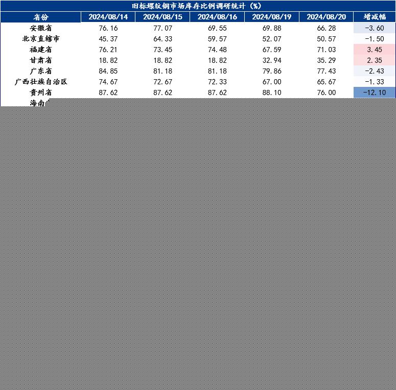 Mysteel调研:8月20日旧标螺纹钢市场库存比例日度调研追踪(分省份)