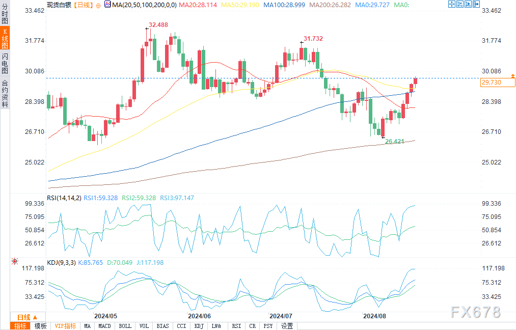 白银分析:多头看好32美元,因美元走弱和美联储降息在即