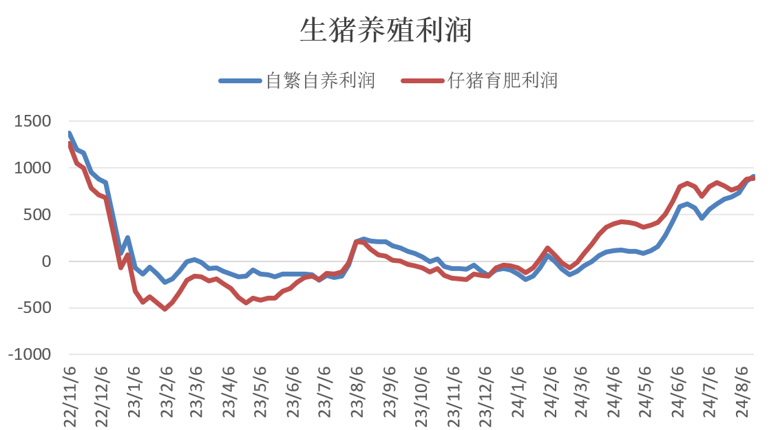 卓创数据显示,日度自繁自养利润为817.29元/头,仔猪育肥利润为807.23元/头,虽然近期猪价回落调整,但饲料价格的下滑也有利于稳定养殖利润,整体看养殖利润近期呈现稳定态势。