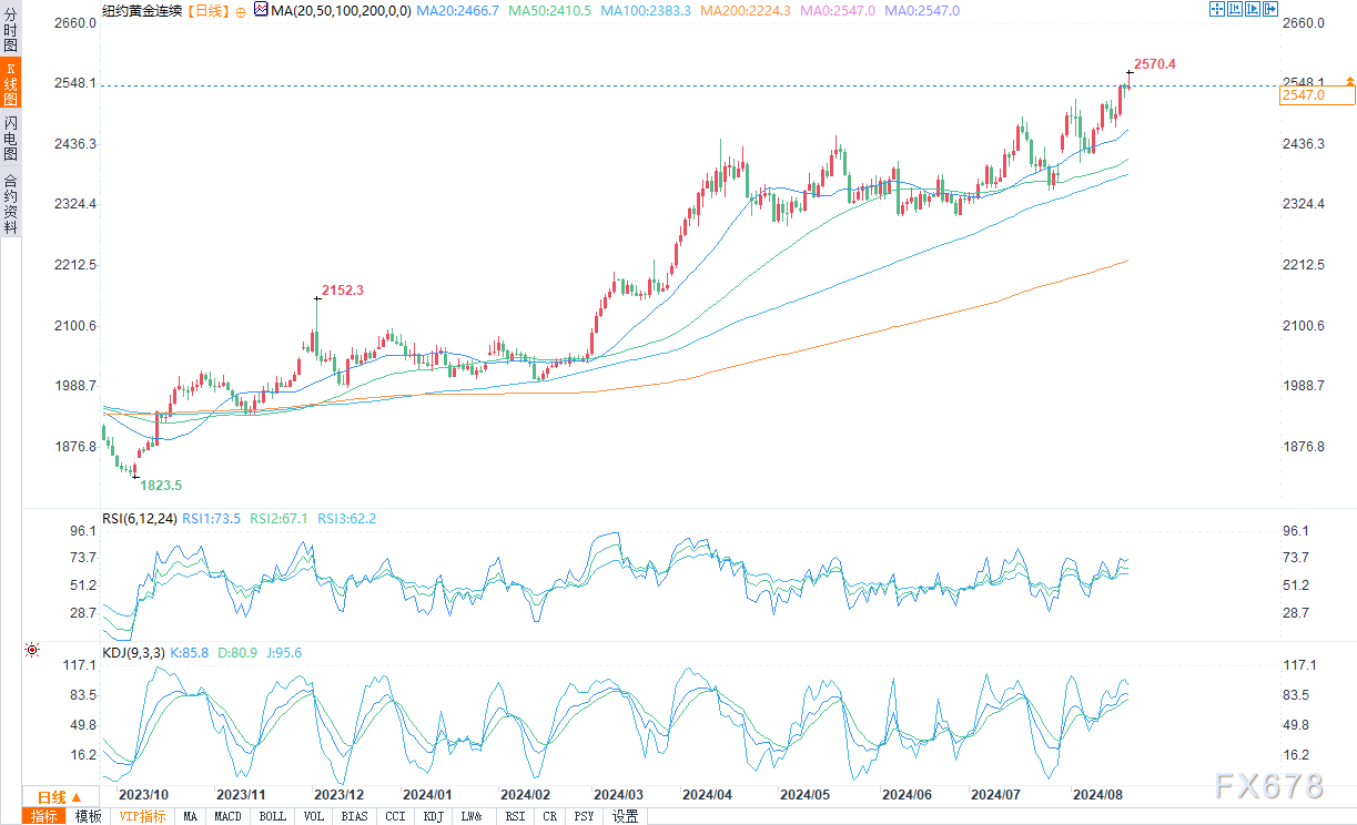 汇通财经APP讯——黄金价格并在周二(8月20日)美国早盘交易中再创历史新高。12月COMEX黄金期货创下2564.60美元的历史新高。白银价格也在上涨,并在一夜之间达到四周以来的最高点。看涨图表和避险需求(尤其是来自中国的需求)正在推高贵金属市场。12月黄金价格盘中上涨22.10美元,至2563.40美元。9月白银价格上涨0.571美元,至29.875美元。