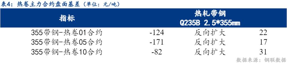 20日市场热卷10合约与355带钢价差反向扩大31元/吨,热卷05合约与355带钢价差反向扩大17元/吨。