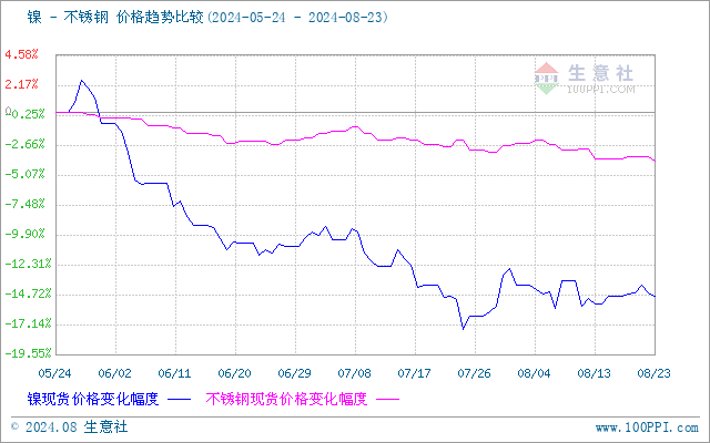 据生意社价差分析工具显示,镍和不锈钢价格基本相似。
