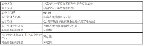 尹培俊离任华富安业一年持有期债券增聘何嘉楠
