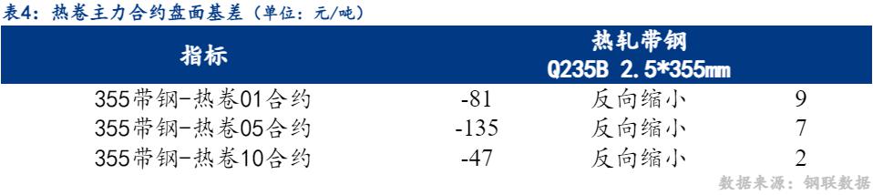 23日市场热卷10合约与355带钢价差反向缩小2元/吨,热卷05合约与355带钢价差反向缩小7元/吨。