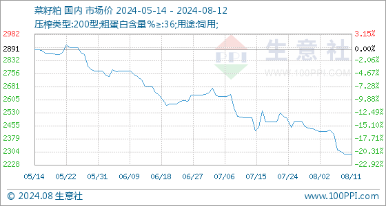 8月12日生意社菜籽粕基准价为2291.67元/吨