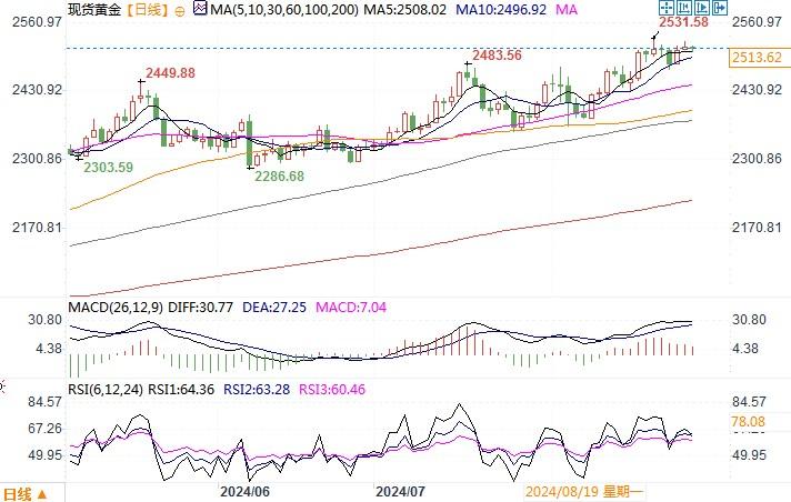 北京时间8月27日14:57现货黄金报2514.62美元/盎司