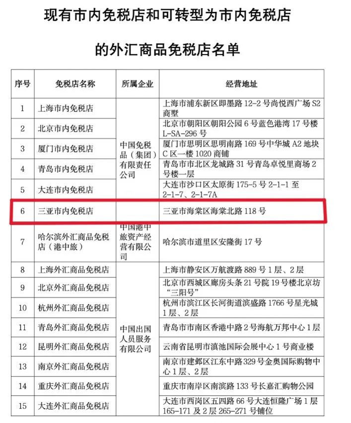 目前,我国现有6家市内免税店,分别位于北京、上海、青岛、大连、厦门、三亚,现由中国免税品(集团)有限责任公司(下称“中国中免”)经营。