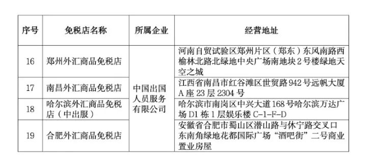 此外,我国还有针对中国籍旅客的13家外汇商品免税店(即归国人员入境市内免税店),包括现由中国出国人员服务有限公司经营的北京、上海、青岛、大连、南京、重庆、合肥、南昌、昆明、杭州、郑州、哈尔滨等12家外汇商品免税店,以及现由中国港中旅资产经营有限公司经营的哈尔滨外汇商品免税店。