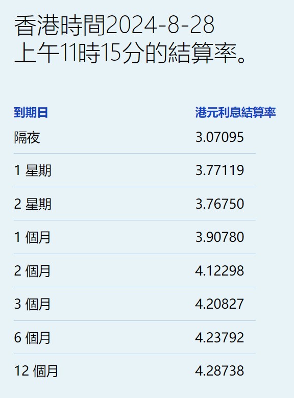 港元拆息连续两日全线下跌隔夜息连跌八天