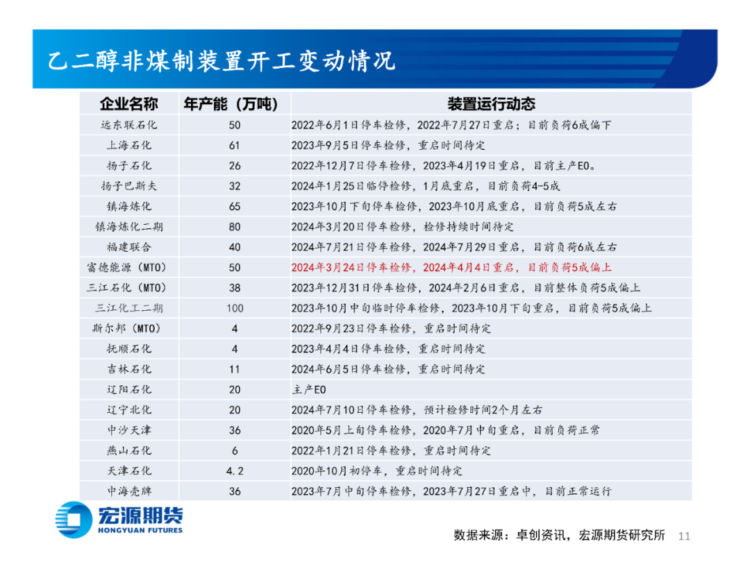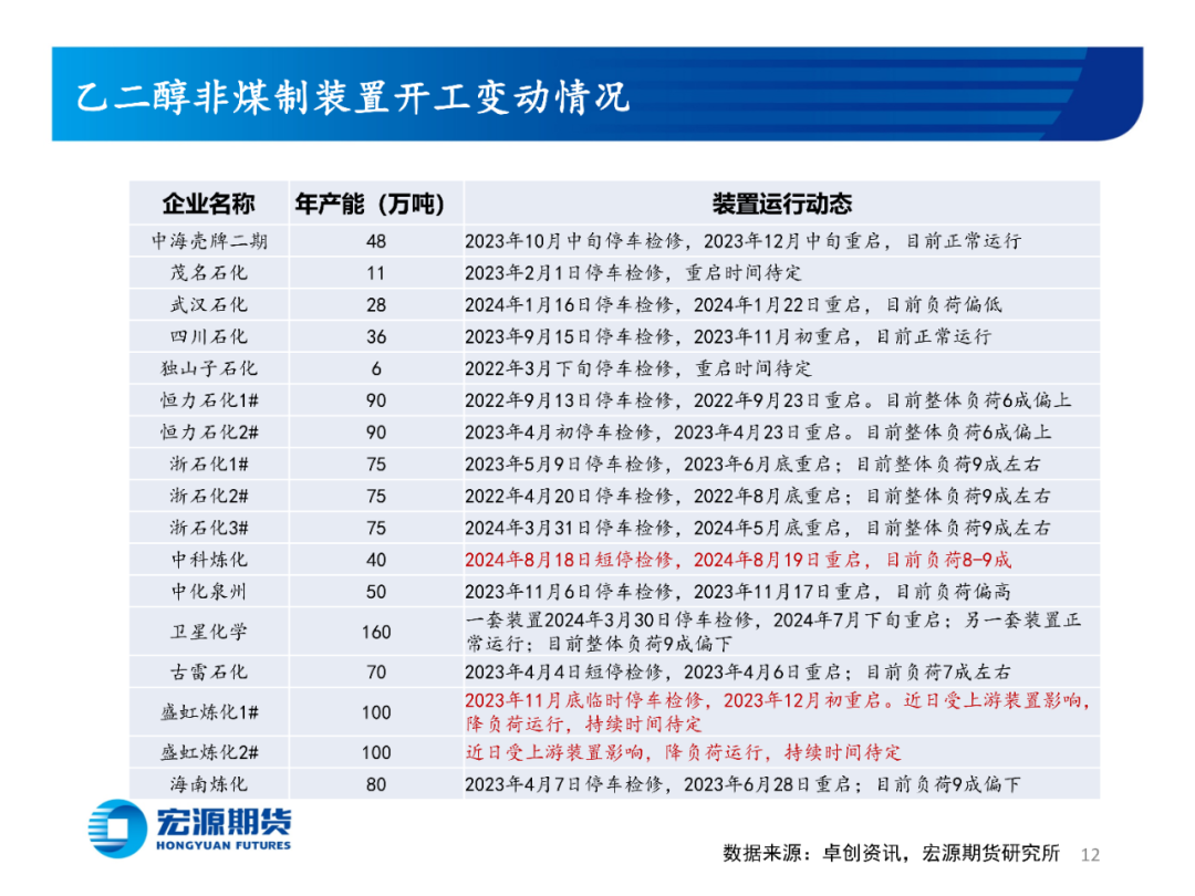 周内乙二醇从低位回升,主要原因是装置减产规模扩大。本周乙二醇装置临时停车、降负增加,同时下游聚酯开工小幅回升,乙二醇供需结构边际改善。周内聚酯工厂观望为主,参与现货询盘较少。乙二醇在聚酯商品中表现较好,并未受到原油大幅下挫的连带影响,盛虹炼化两套大装置降负带来的提振效果明显。