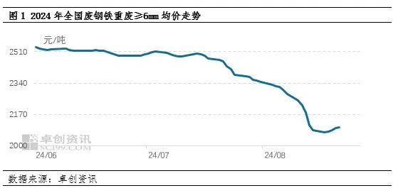 据卓创资讯监测,8月废钢市场整体呈现偏弱走势,截至8月26日,卓创资讯监测8月全国6-8厚重废市场均价为2208.78元/吨,相较于上个月均价下降255.76元/吨,降幅10.38%。一是期货市场螺纹钢价格偶有回暖,尽管上行动力并不充足,但对于市场心态起到了一定的支撑作用;二是由于前期钢厂普遍因利润亏损而采取了降低消耗、减少库存的操作,导致部分钢厂的废钢库存水平下降,从而迫使这些企业提高采购价格来吸引货源以保证正常的生产运营。