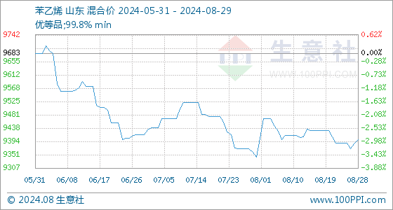 8月29日生意社苯乙烯基准价为9400.00元/吨