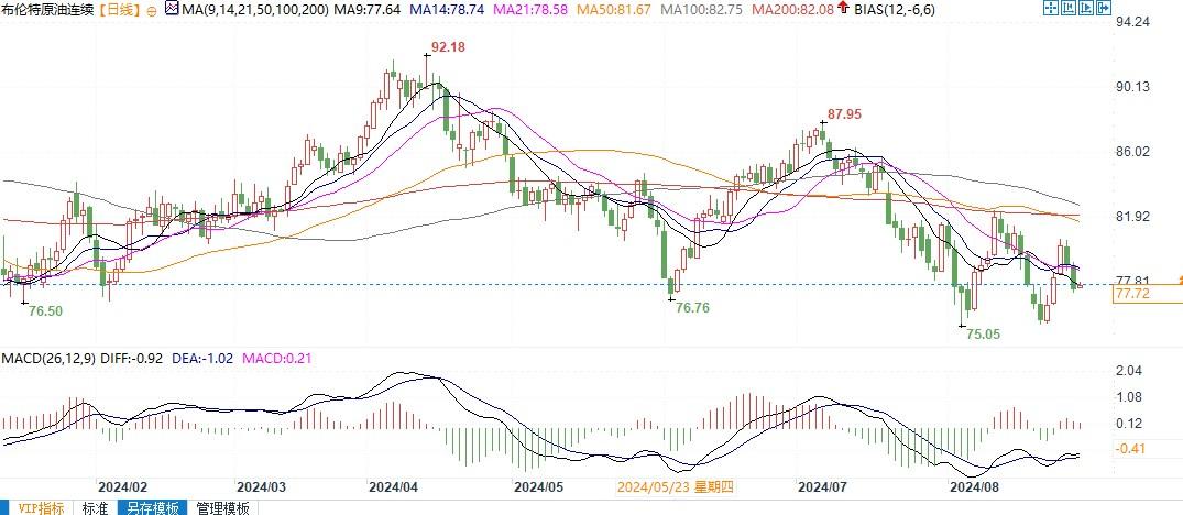 北京时间8月29日11:20,布伦特原油价格报77.71美元/桶