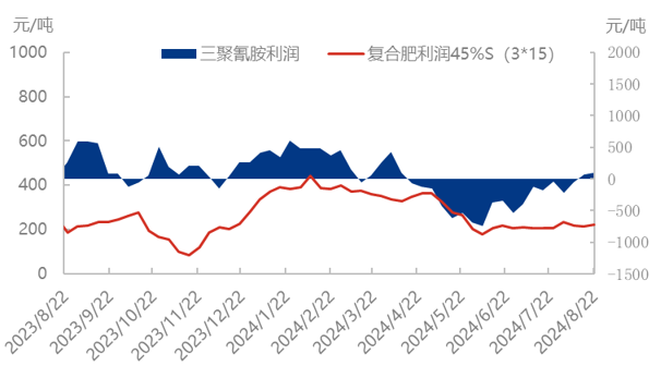 图9下游复合肥、三聚氰胺行业利润变化图  |