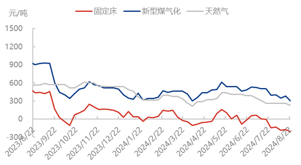 截止2024年8月22日(第34周),中国尿素样本企业理论利润稳中下行。煤制固定床工艺理论利润为-211元/吨,较上周下调37元/吨。煤制新型水煤浆工艺理论利润为300元/吨,较上周下调80元/吨。气制工艺理论利润230元/吨,较上周下调30元/吨。主要原因:本周煤炭及尿素主流价格弱势下行,利润也有所走低,而天然气成本保持稳定,尿素主流价格较上周窄幅下行,企业利润随之走跌。
