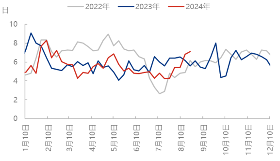截至2024年8月21日,中国尿素企业预收订单天数7.12日,较上周增加0.3日,环比增加4.4%。本周期尿素价格跌破前期,上半周尿素企业收单一般,周二起期货拉涨带动下,企业收单好转,订单量有所增加。