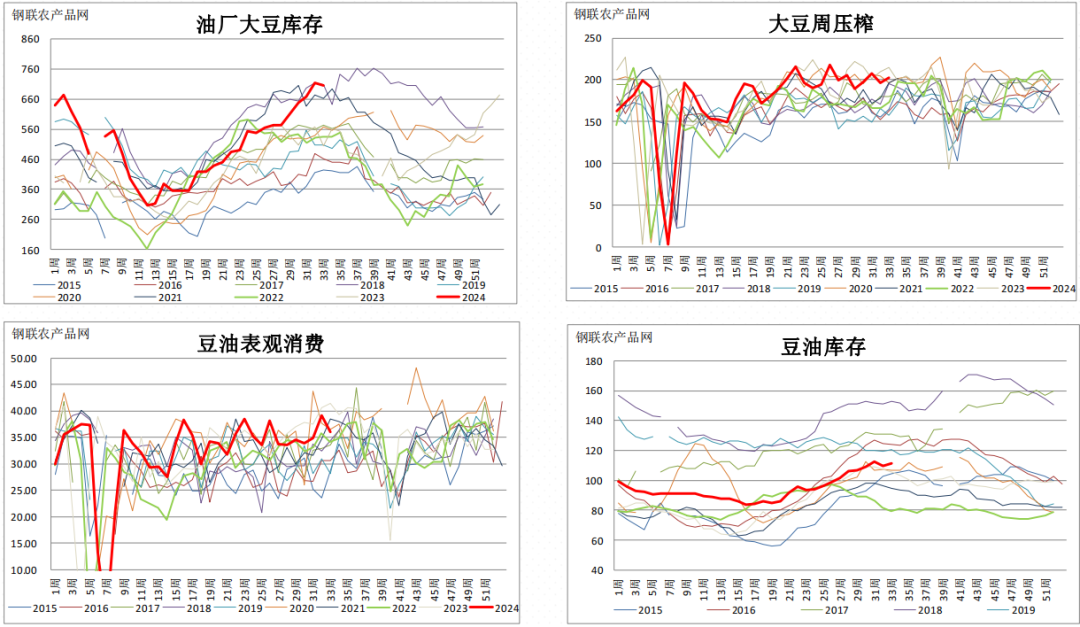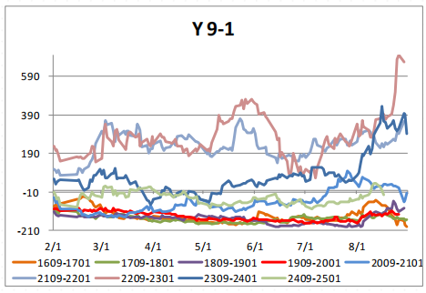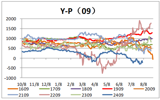 8月USDA美豆报告美豆面积上调至8710万英亩,单产上调至53.2蒲/英亩,新作年度库销比 测算12.76%,整体来看维持宽松预期,关注近期Pro Farmer的田间调查情况。